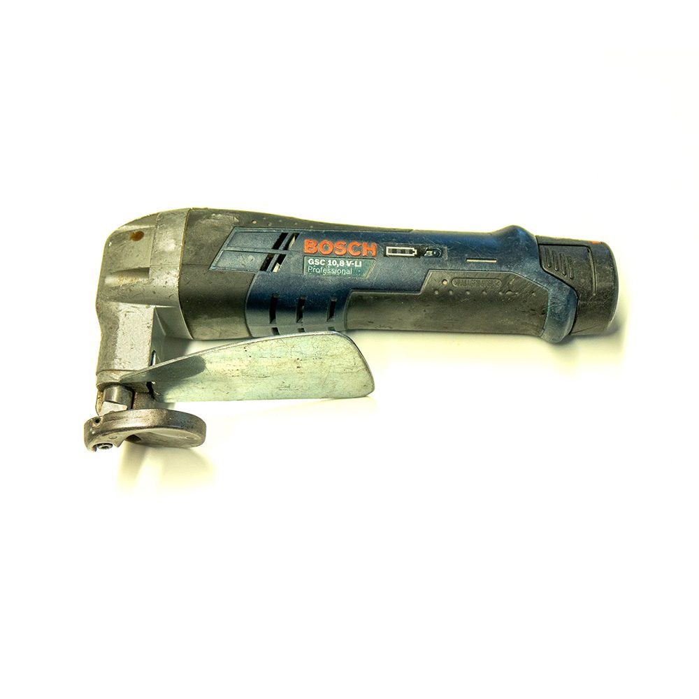 Pladeklipperen er rigtig god, hvis der skal klippes meget. Der opnås ikke ligeså rent snit, som pelikansaksen, men til gengæld er det rigtig hurtigt at arbejde med og det er det væsentlige ved pladesaksen. Der medfølger ekstra batteri og lader til pladeklipperen